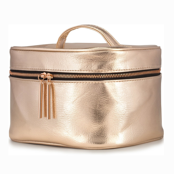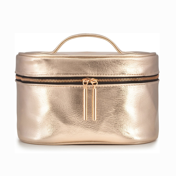 Travel in style with our rose gold vegan leather makeup bag! Soft PU material has a rich,